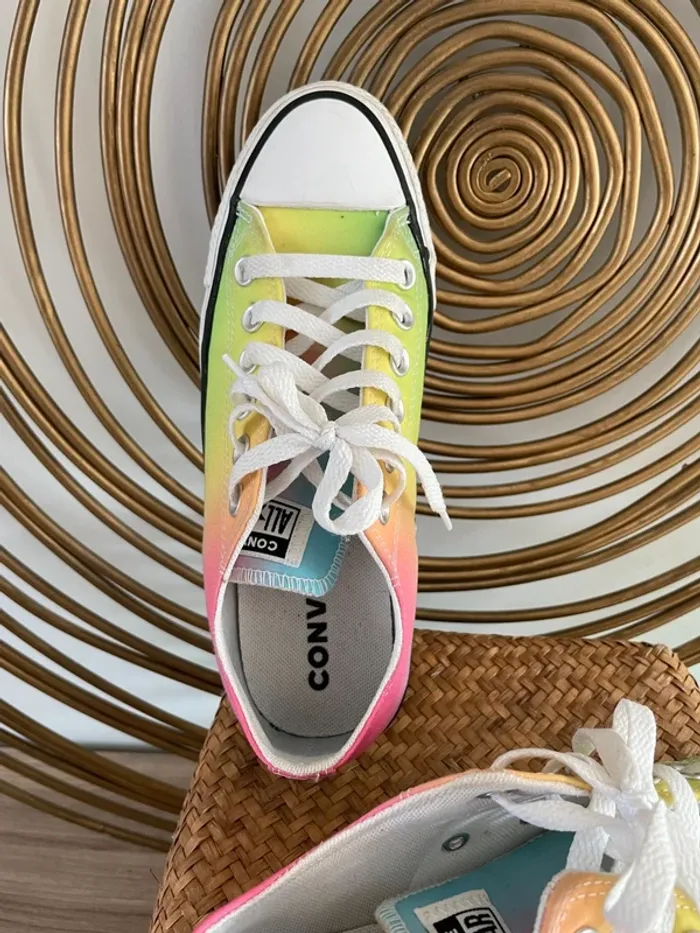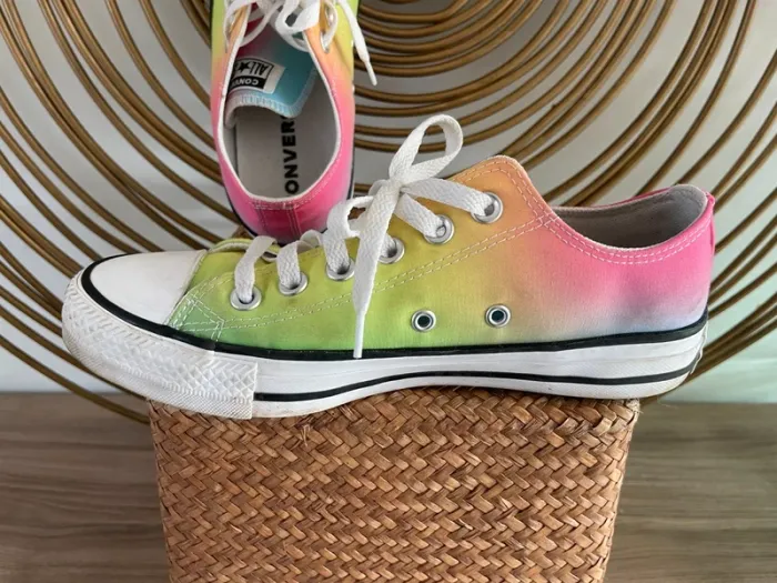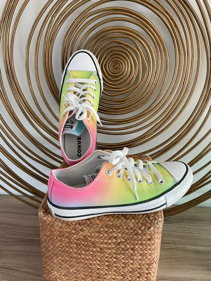 Je vends cette paire de converse basses multicolores en bon état. Il y a quelques très légères taches à peine visibles Pointure 37.5 #converse #conversemulticolores