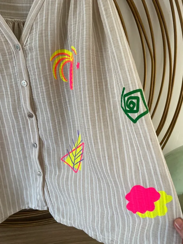Blouse/chemisier rayé à imprimés colorés - photo numéro 2