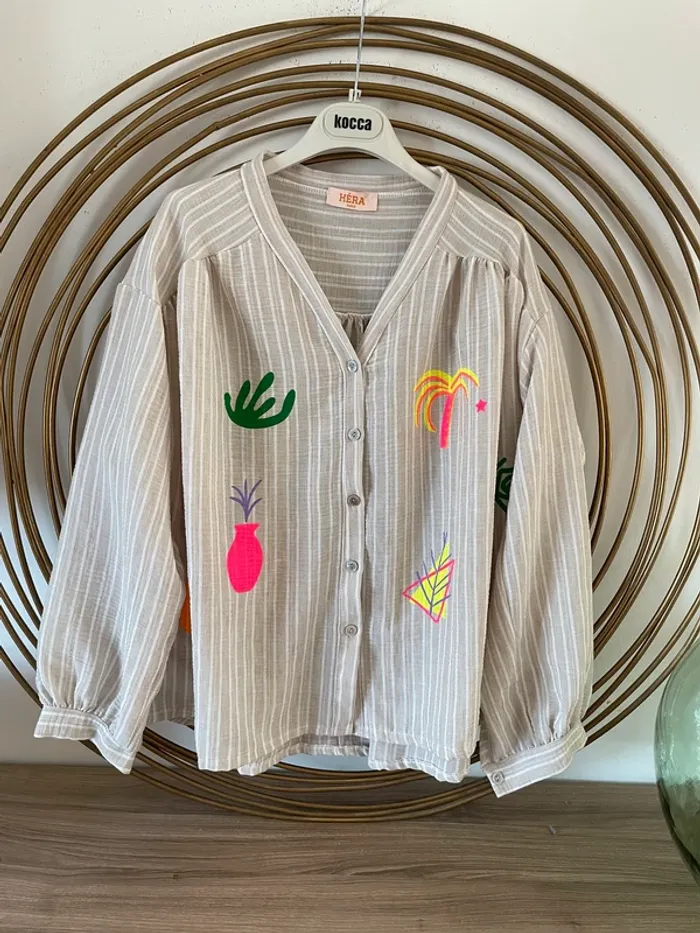 Blouse/chemisier rayé à imprimés colorés - photo numéro 1