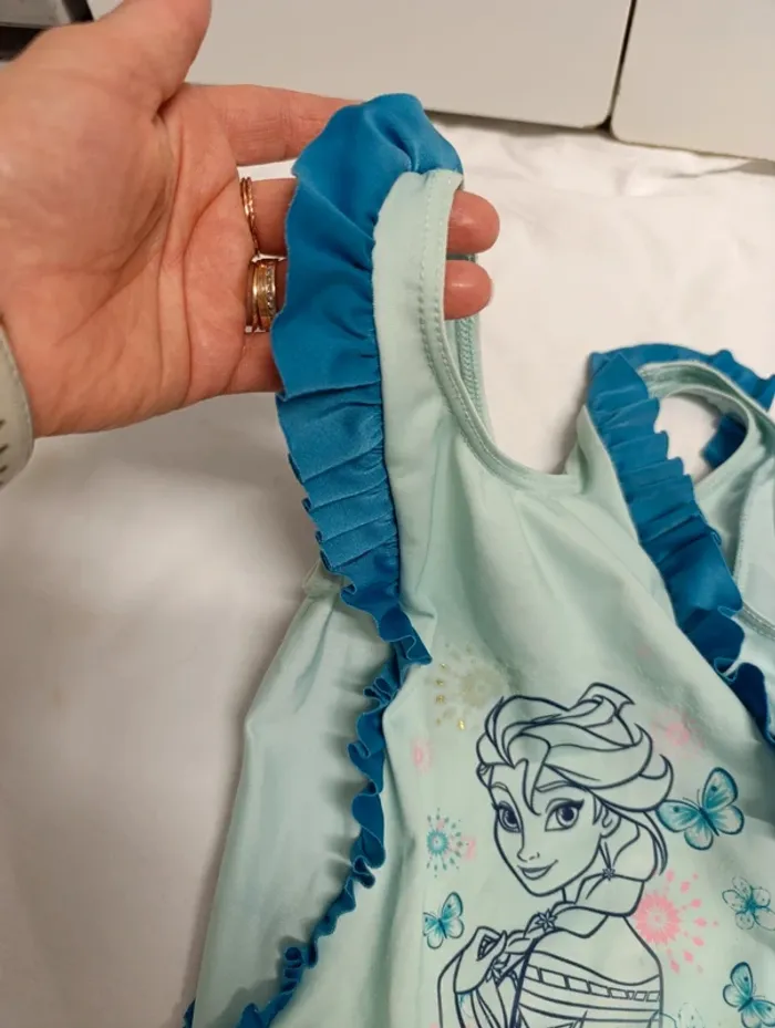 Maillot de bain, thème reine des neiges. Taille 6 ans Très bon état (juste quelques paillettes qui ont disparu avec le temps, voir photos) D'autres articles enfant à vendre dans mon dressing (fille jusqu'à 12 ans, garçon jusqu'à 3 ans). N'hésitez pas à aller les consulter et à faire un lot 😉 Utilisez le filtre pour faciliter vos recherches 👍
