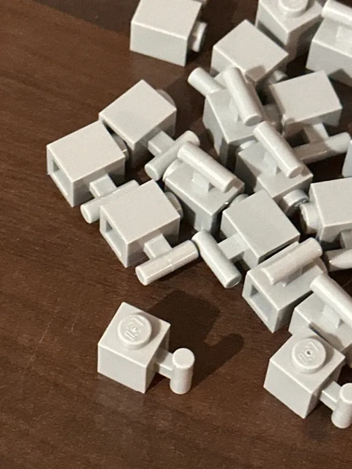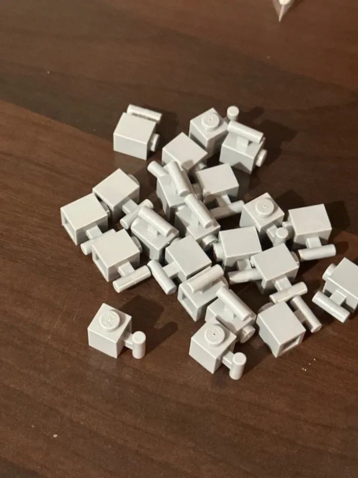 20 Brick lego , Modified 1 x 1 with Bar Handle ref 2921 Light Bluish Gray - photo numéro 1