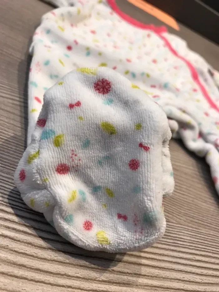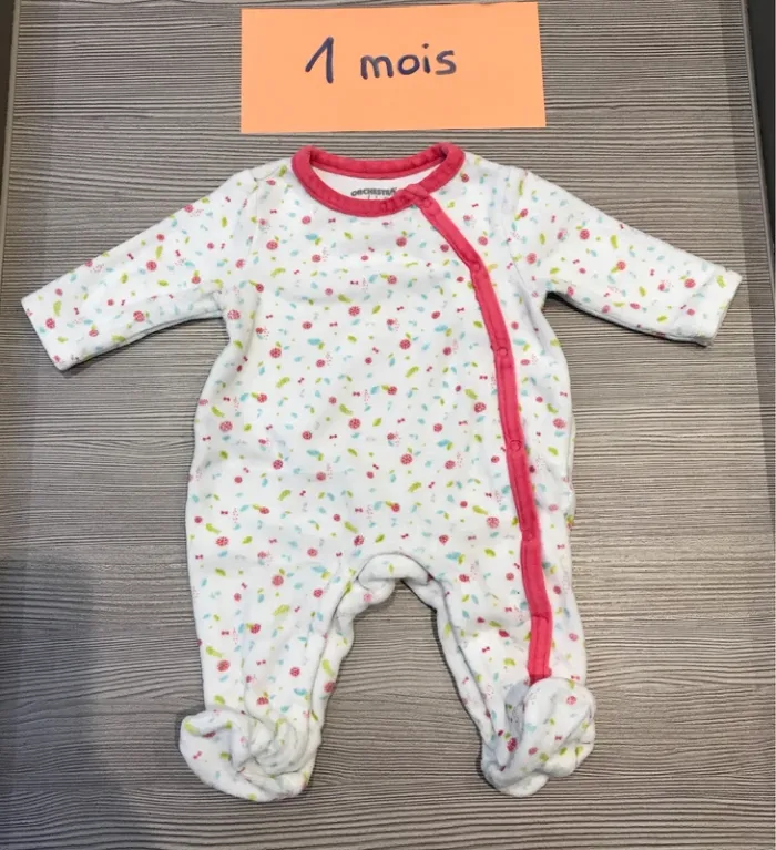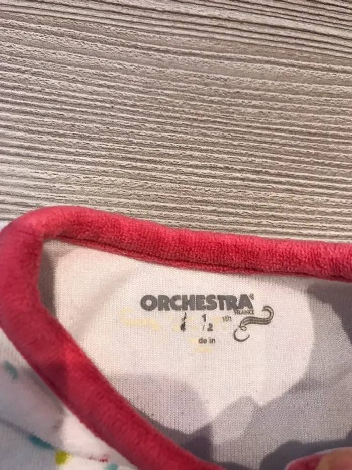 Pyjama velours fille 1 mois Orchestra Blanc imprimé rose vert bleu. motifs fins Très bon état. Dressing en 1 mois sur le lien ⬇️ #celine1485_fille_01mois 👌🏻Dressing trié par taille dans mon profil onglet « à propos ».
