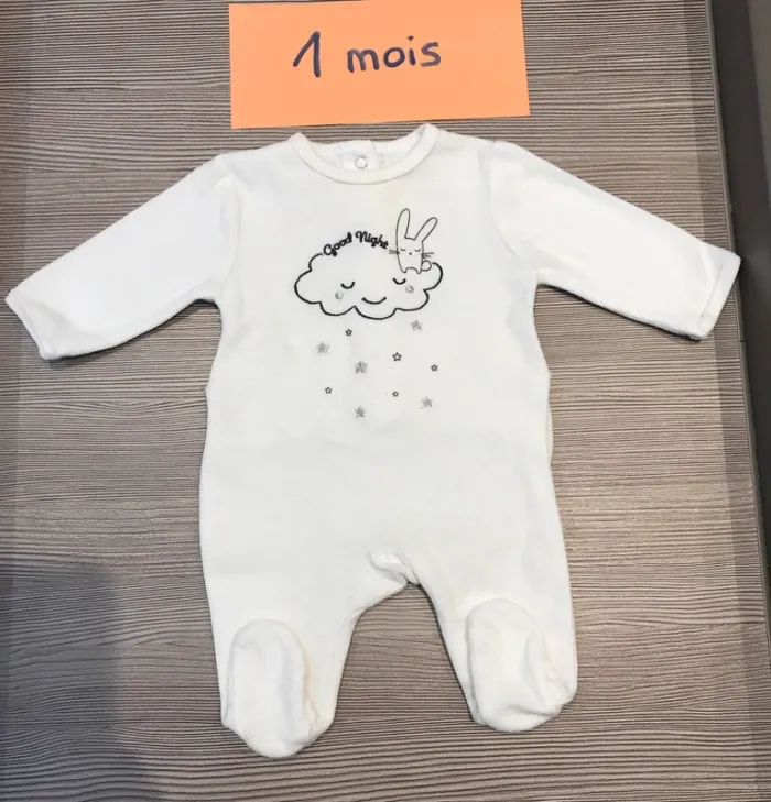 Pyjama velours garçon 1 mois Kiabi Blanc. Thème nuage. Très bon état. Pas de tache Dressing en 1 mois sur le lien ⬇️ #celine1485_garcon_01mois 👌🏻Dressing trié par taille dans mon profil onglet « à propos ».