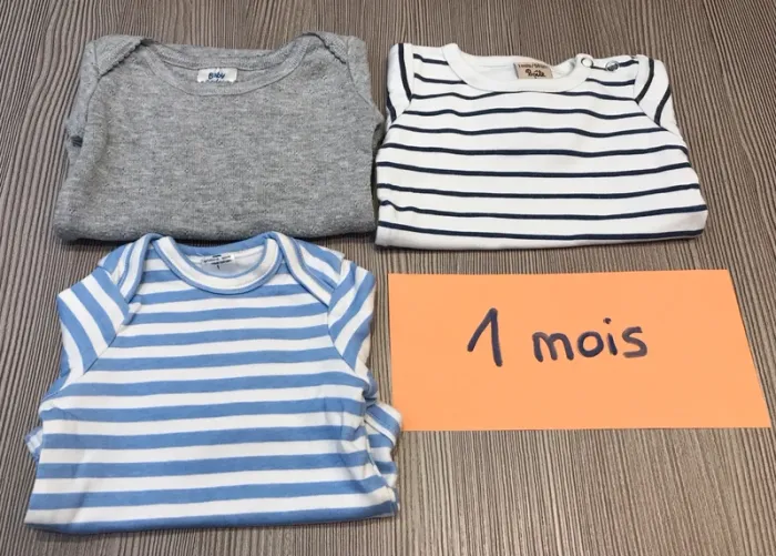 1 marinière C&A - 1 marinière boîte à malices - 1 gris note naissance mais taille 1 mois