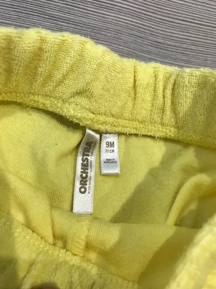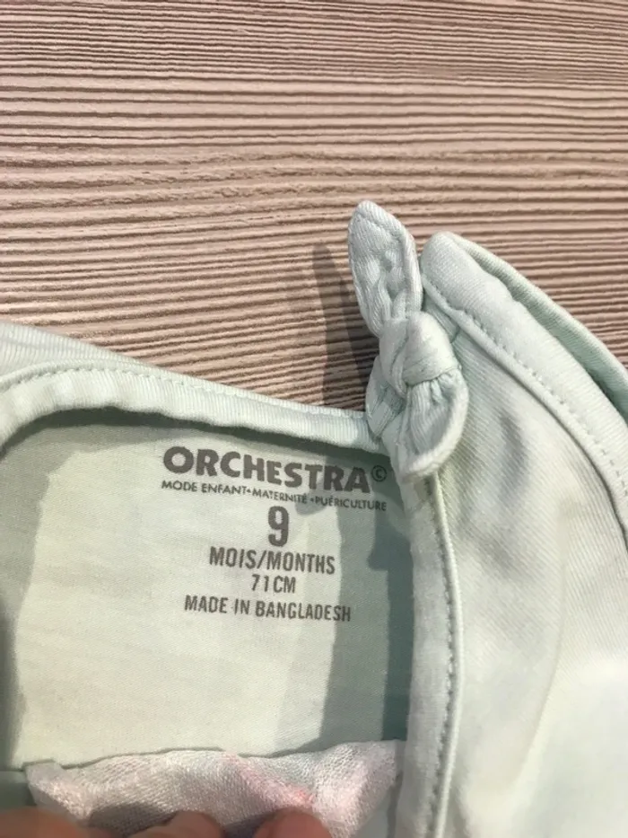 Ensemble 2 pièces été fille 9 mois. Orchestra. En bon état. 1 teeshirt sans manches beu ciel avec imprimé fruits (léger craquage sur l’imprimé j’ai donc mis en bon état pour ce seul motif + 1 short éponge jaune aucun défaut. Dressing en 9 mois sur le lien ⬇️ #celine1485_fille_09mois 👌🏻Dressing trié par taille dans mon profil onglet « à propos ». #orchestra