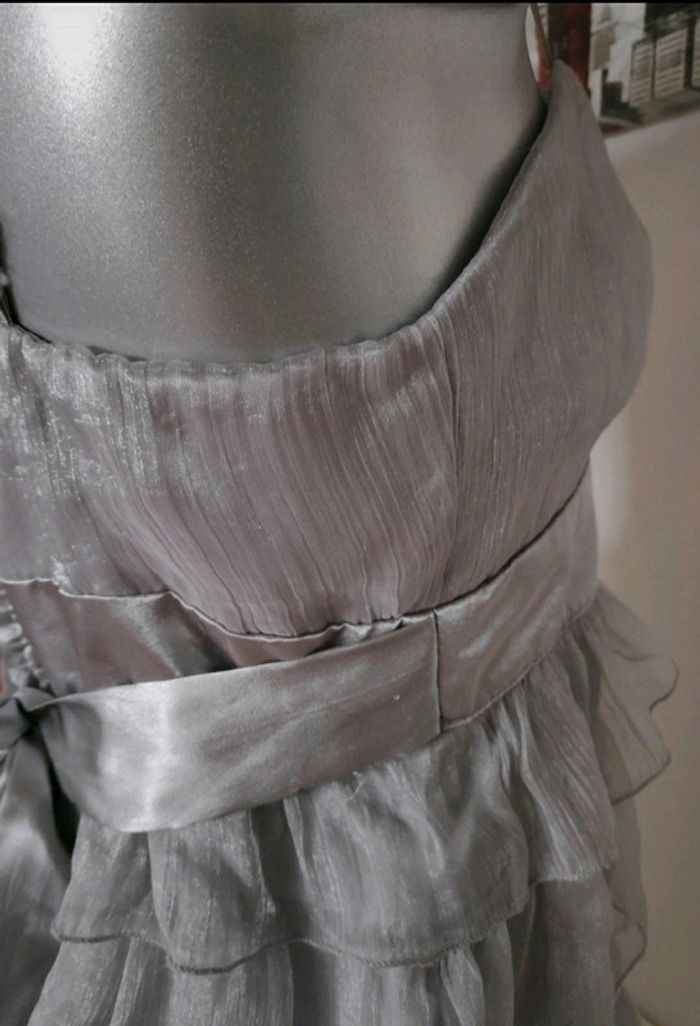 Sublime 🤗 Tres jolie robe bustier Voile sur toute la robe Ruban soyeux Entierement doublee Bretelles reglables Taille L Tres bon etat portée 2 fois #robeargentée #silver #voile #robesilver #robebustiertaillel #silverdress #robejennyfer #bustierdress #vestidobustier #robeabretelle #robechic #sexydress #jennyfertaillel