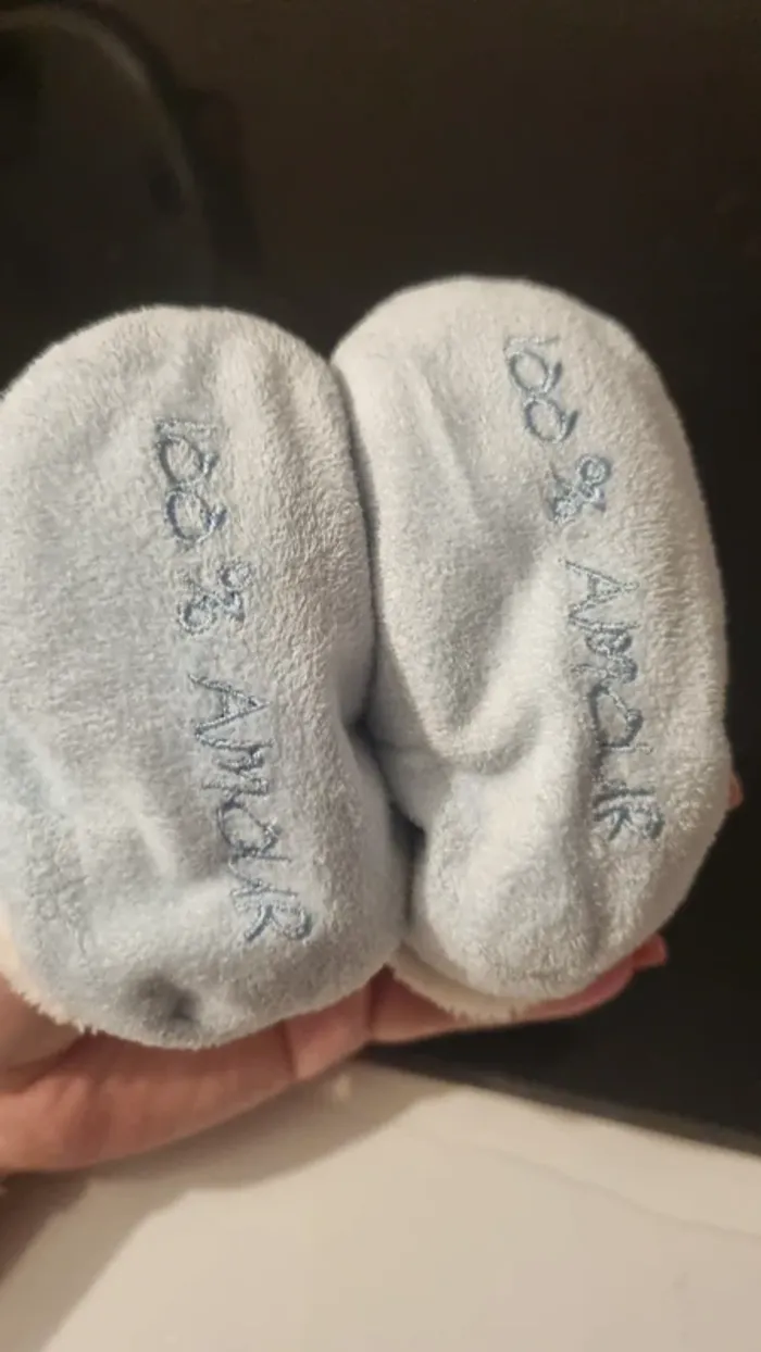 Chaussons Bébé garçon 6 mois Inscription maman et papa Très bon etat #aureliakeylian_accessoiresbebe #aureliakeylian_accessoiresgarcon #chaussonsbebegarcon #chaussonsbebegarcon6mois