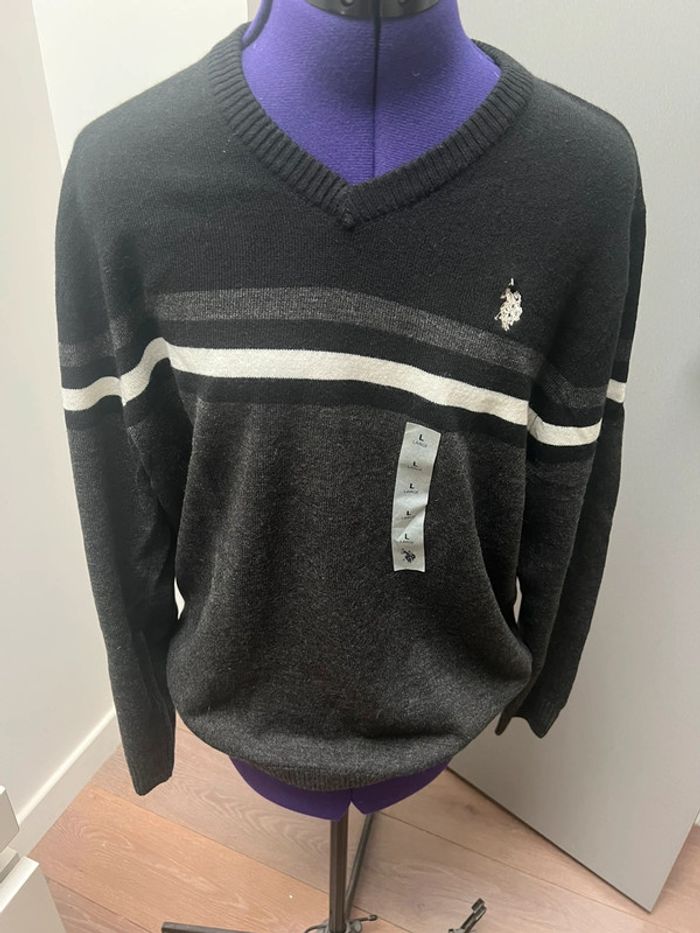 Pull avec rayures 100 % acrylique Col V Produit authentique Idéal pour offrir (étiquettes présentes)