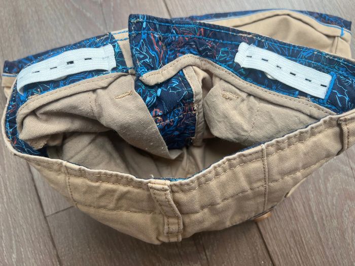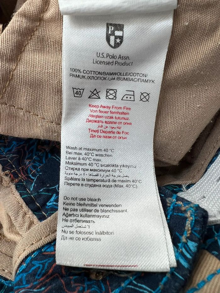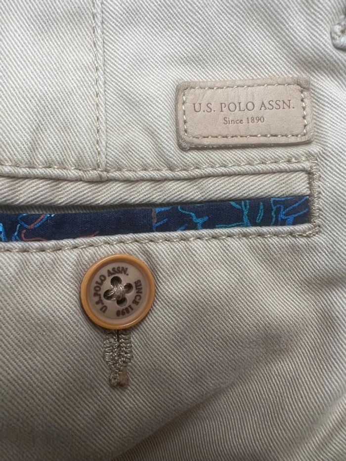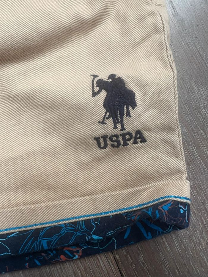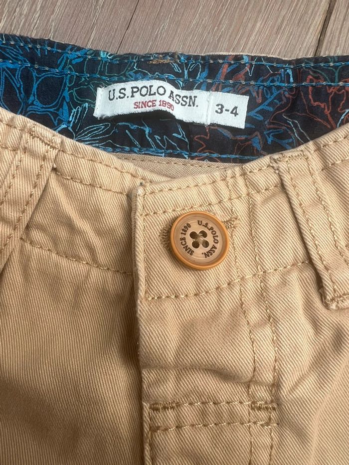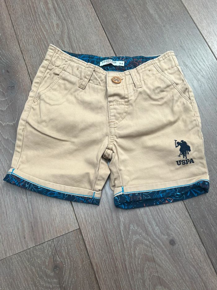 Magnifique short en coton U.S. POLO ASSN. Taille 3/4 ans taille plutôt grand Ajustable a la taille par élastique et boutons intérieurs Hyper classe et style Revers fleuri Lavé mais jamais porté comme neuf La couleur est en beige camel comme sur la dernière photo