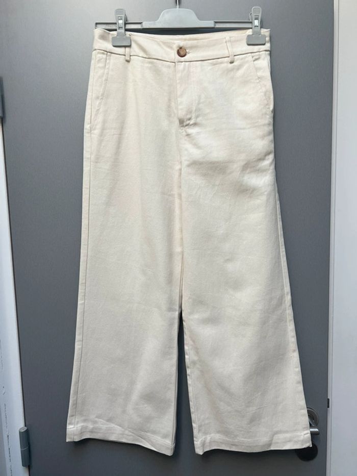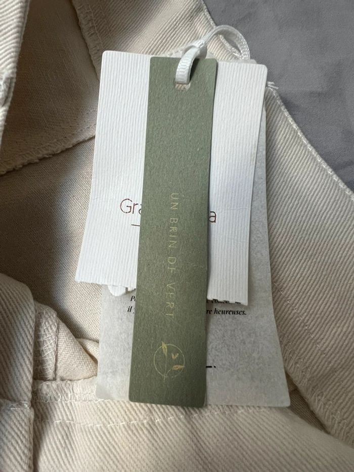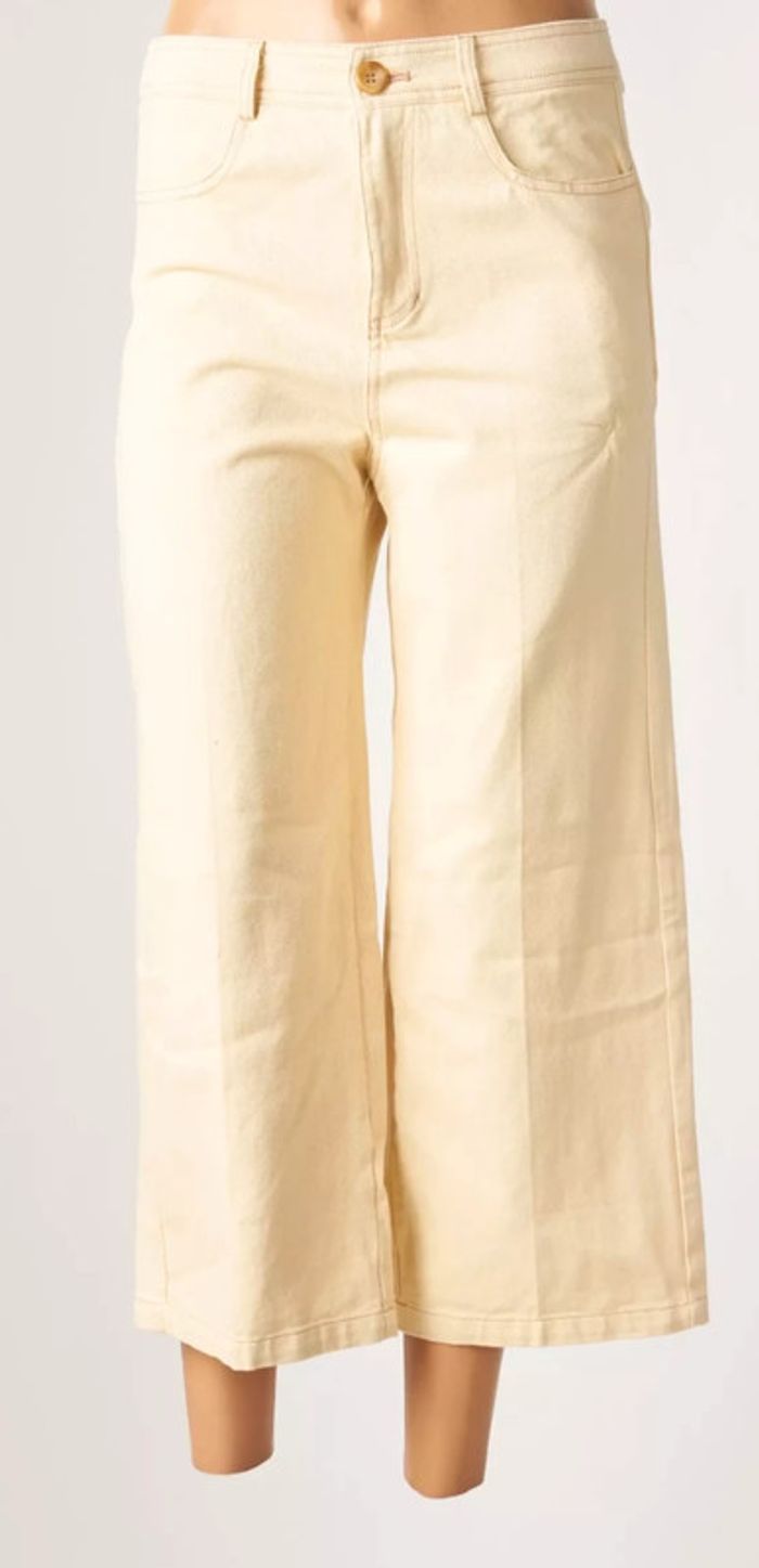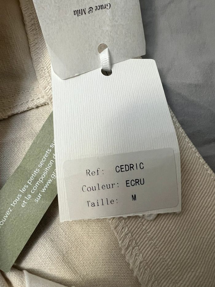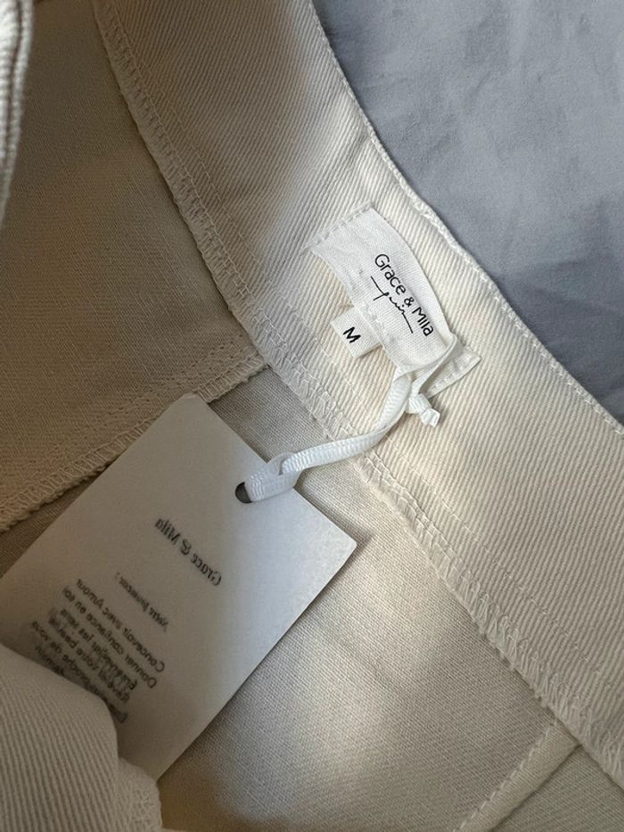 Référence n°2028079PX Marque : Grace & Mila Catégorie : Pantacourt femme Couleur : BEIGE Coupe : Ample Fermeture : zippée sous rabat boutonné Poches : Oui Type de taille : Normale Tissage : Tissage texturé La couleur est comme sur les photos 3 et 4 (beige) Modèle Cédric 💯 % coton