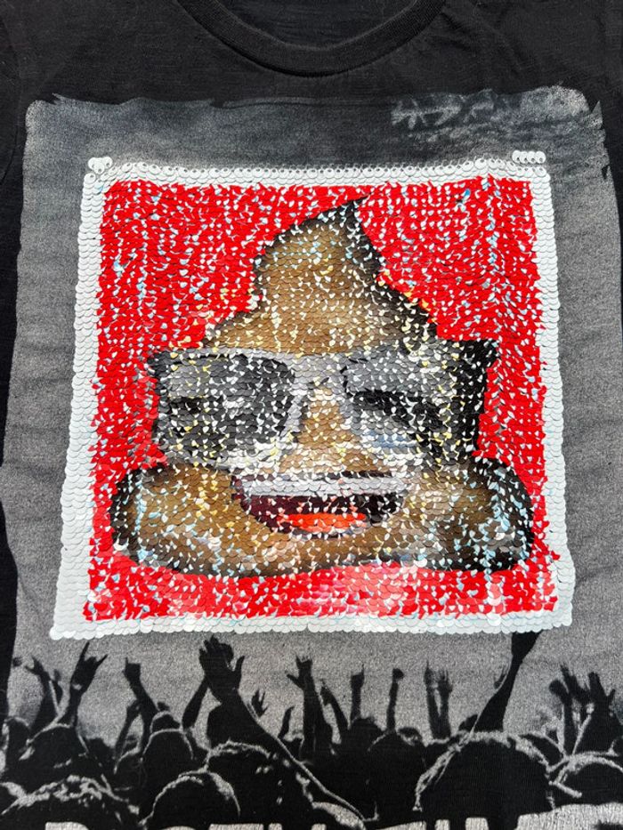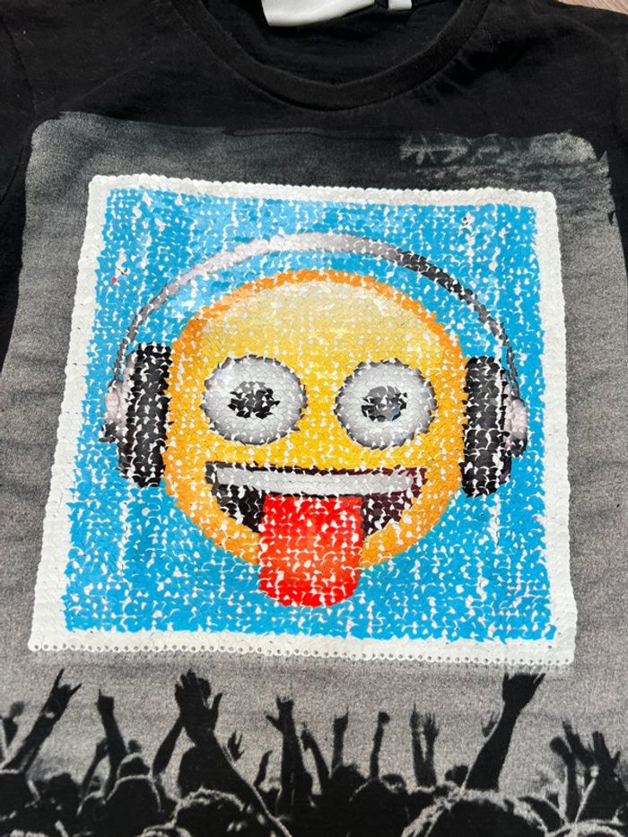 Tee shirt a sequins/ paillettes réversibles avec un smiley qui tire la langue ou une crotte 💩 💯 % coton Petit trou qui nécessiterait un petit point mais à peine perceptible (voir dernière photo)