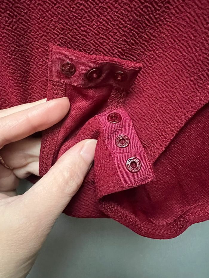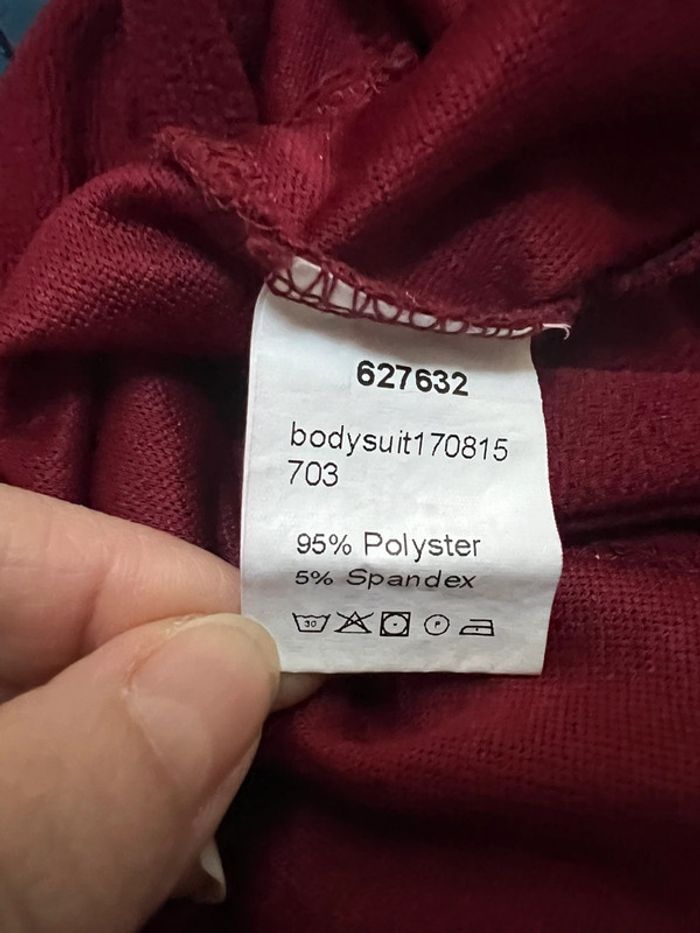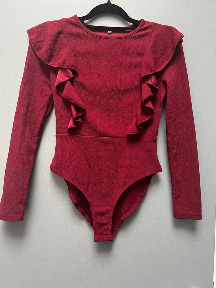 Body avec volants sur le devant et l’arrière Coloris bordeaux/ prune (plus foncé que sur les photos) Fermeture par boutons pression