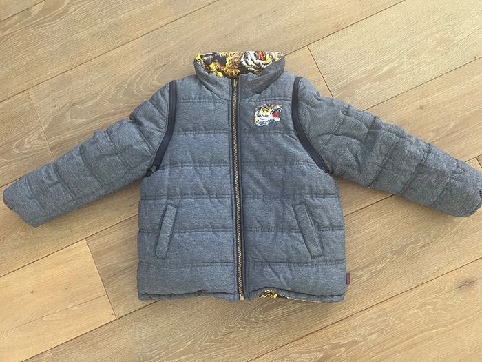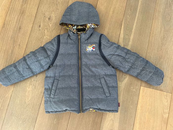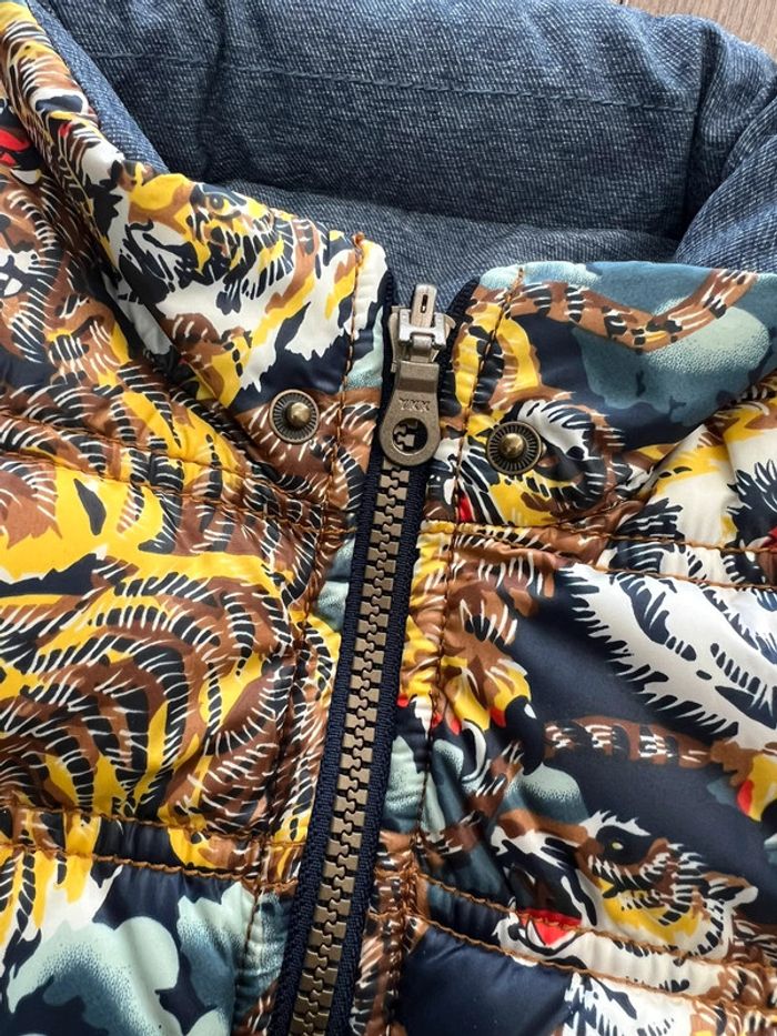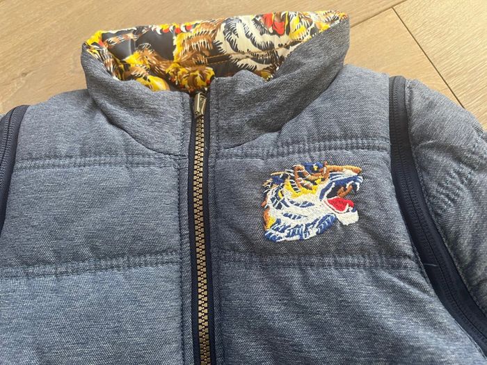 Cette doudoune KENZO Kids fait sensation avec son imprimé jungle multicolore. Avec sa coupe courte, elle est très moderne. Elle est réversible pour s'accorder avec la majorité des tenues. Le logo KENZO est présent sur la poitrine. Les manches peuvent s’enlever car elles sont amovibles. Capuche intégrée dans le col Doudoune très chaude car bien épaisse Jamais portée
