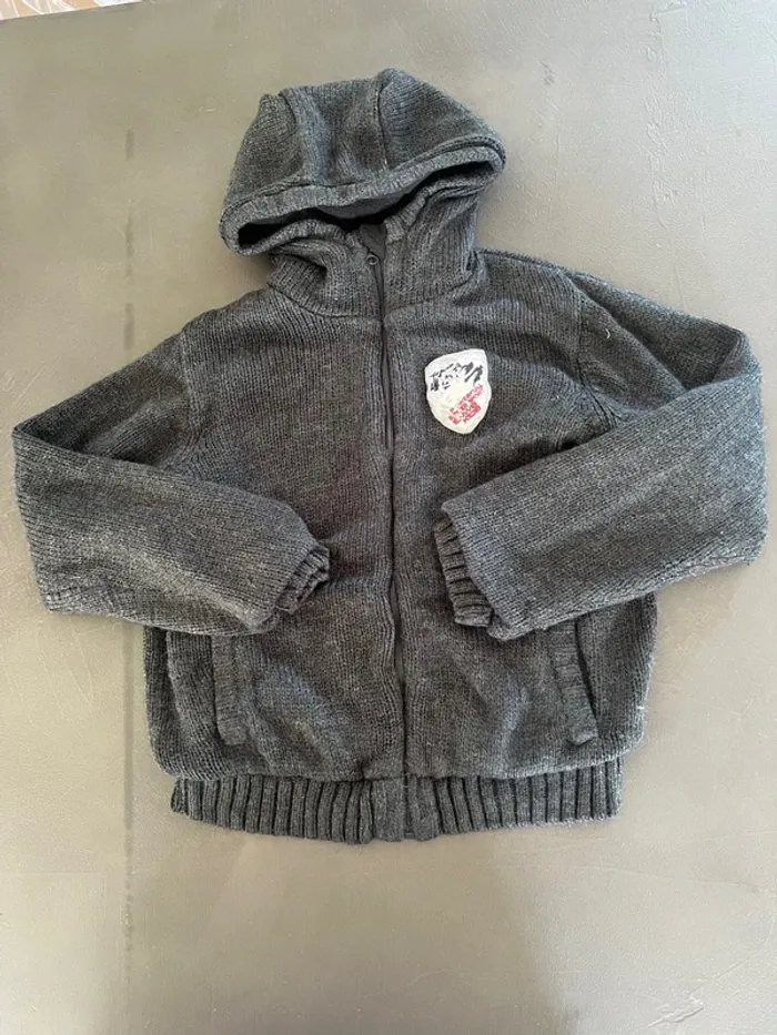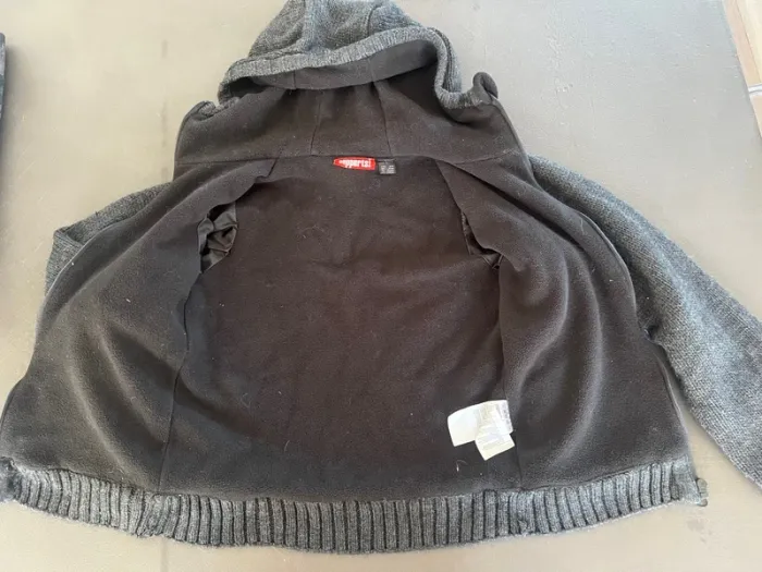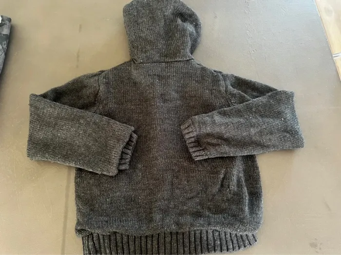 Veste très chaude extérieur laine intérieure polaire Fermeture zippée Avec capuche et poches Petit accro à l’arrière de la veste mais se fond avec la doublure polaire donc ne se voit pas trop voir dernière photo