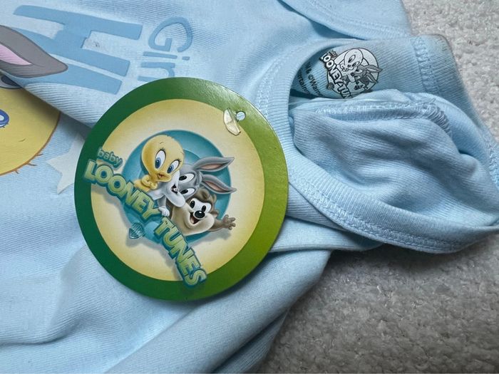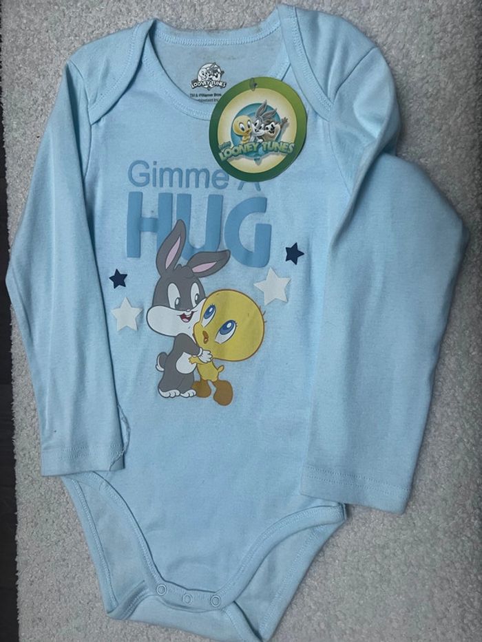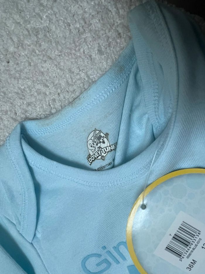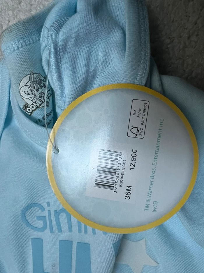 Bodies manches longues avec fermeture à pression 💯 % coton Taches de poussière au niveau du col de l’un des deux body lié au stockage dans un carton mais les bodies sont bien neufs avec étiquette et cela partira sans souci au lavage (voir dernière photo) Taille 36 mois
