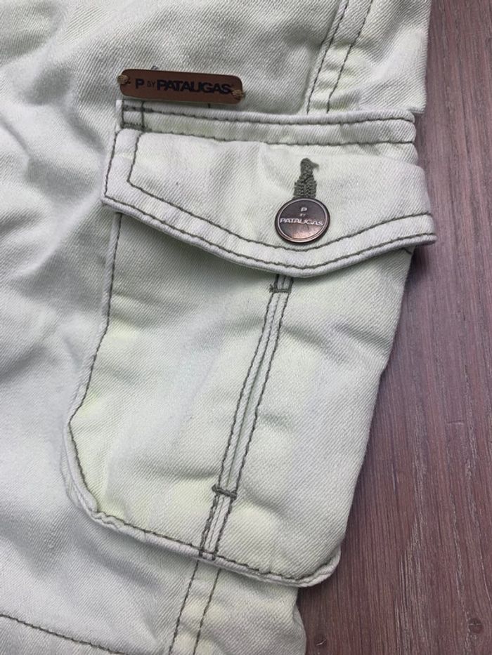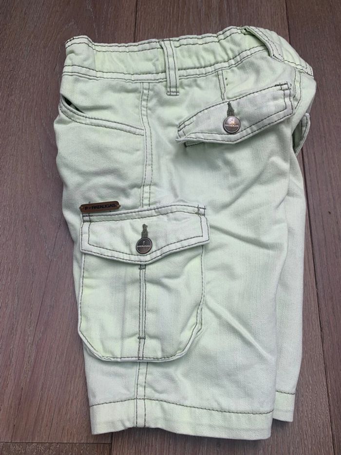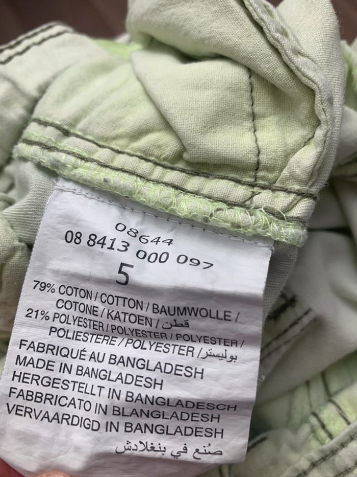 Très pratique grâce à la fermeture par bouton pression Ajustable a la taille par élastique et boutons La couleur ne ressort pas bien sur les photos il s’agit d’un vert anis voir jaune plutôt fluo (assez flash) en tie and dye