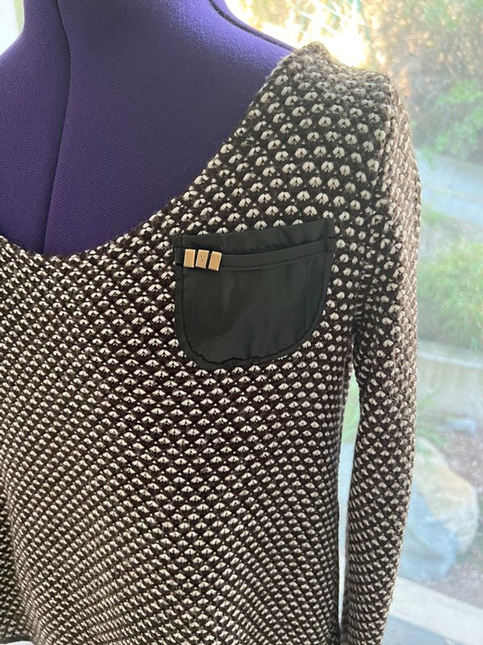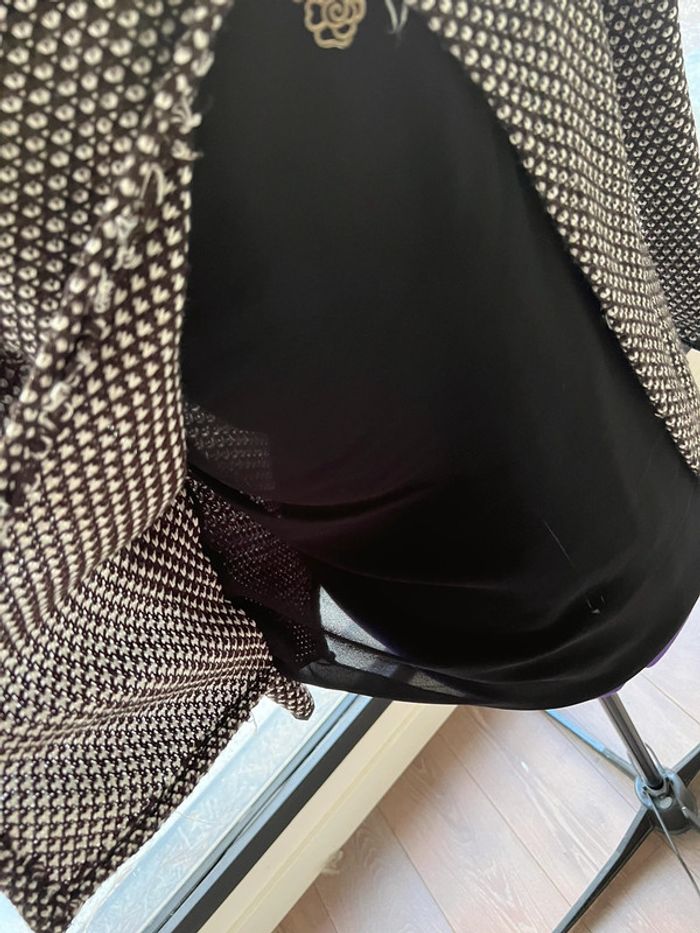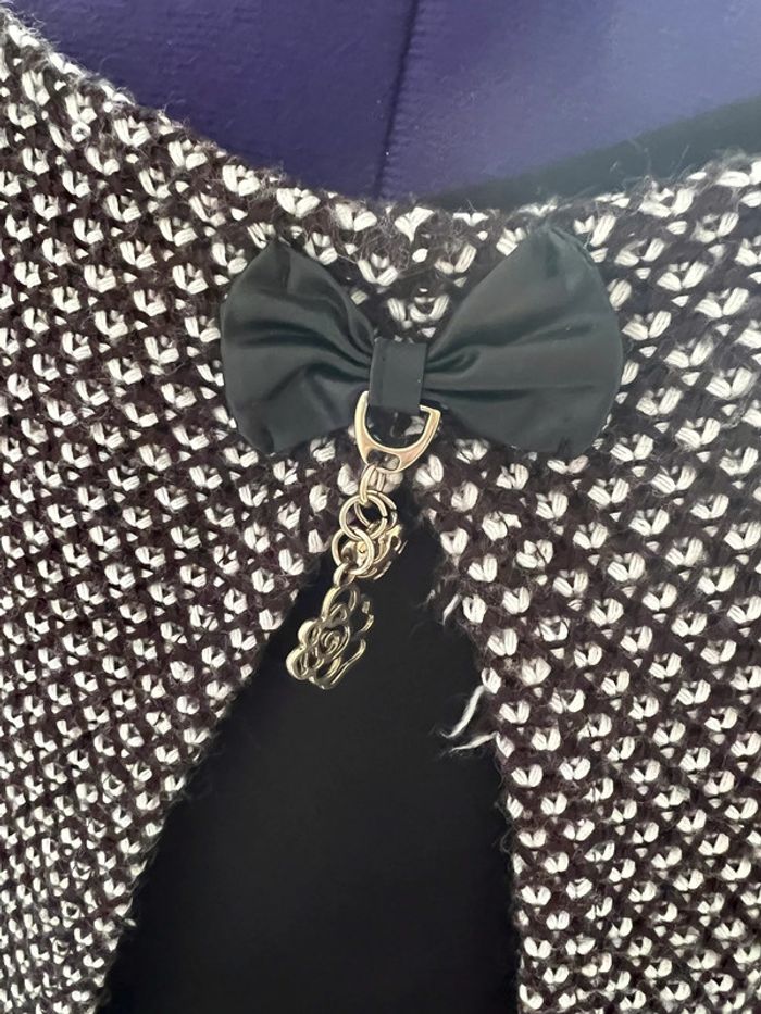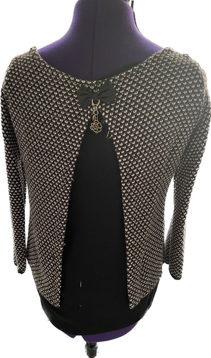 Nombreux détails en similicuir noir: petite poche a l’avant, petit noeud derrière et liseré autour des manches Joli voilage coloris noir à l’arrière