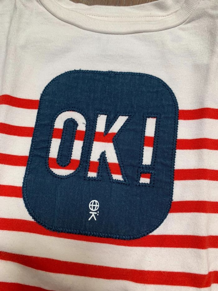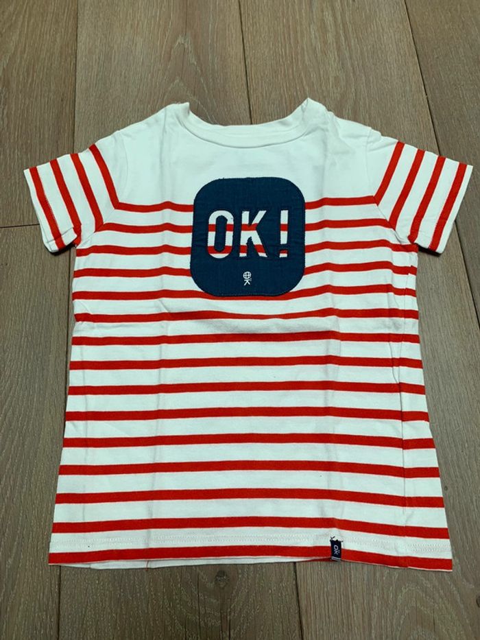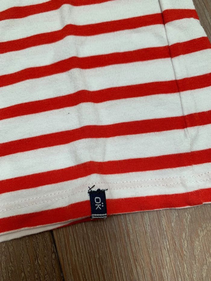Joli tee-shirts rayures rouges Empiècement en jeans sur le devant Étiquette intérieure coupée mais il s’agit de 💯 % coton Lavé mais jamais porté