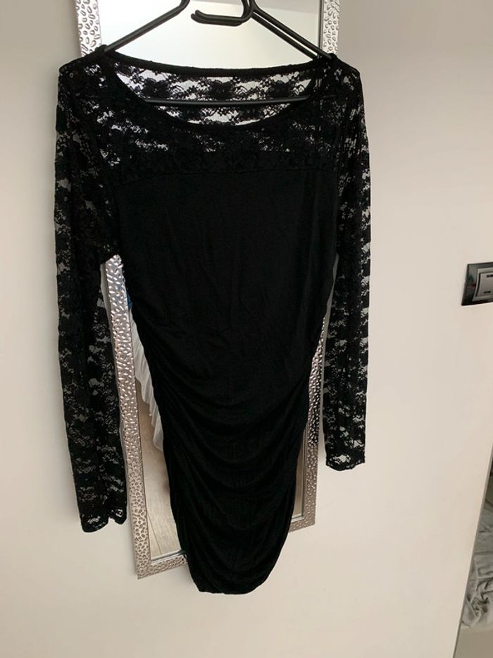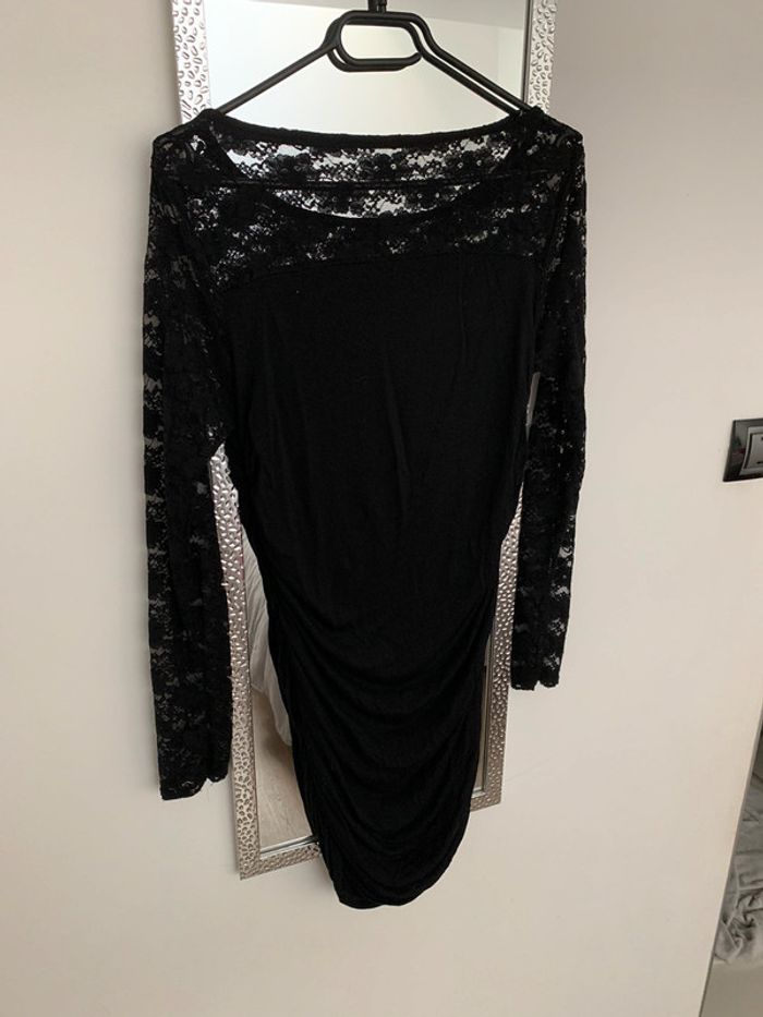 robe noire moulante longueur 76cm environ peut se porter comme robe ou comme tunique pas de taille mais convient à un 36 extensible