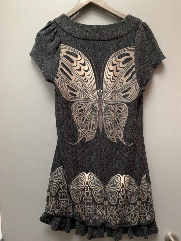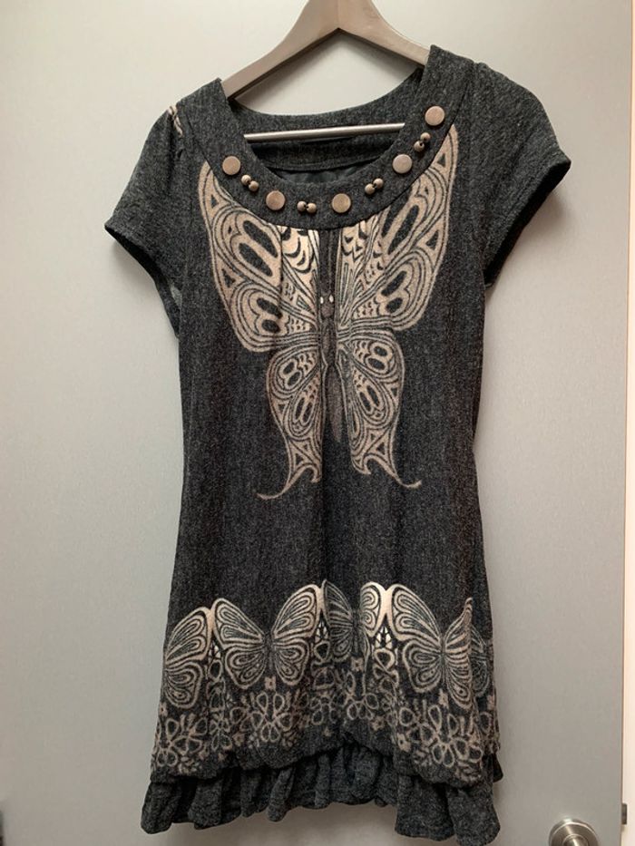 longueur 79cm élastique en bas de la robe avec petits volants motifs papillons Détails en bois au niveau de l’encolure pas de taille mais convient à un S/M