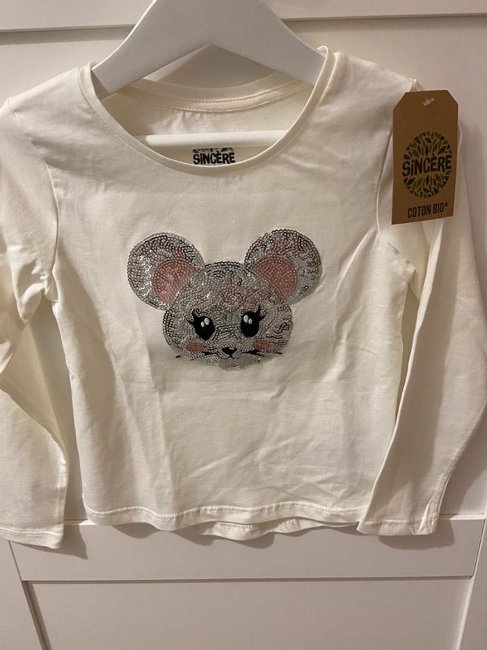 Joli tee shirt Souris en sequins Coton bio Remise automatiquement appliquée sur les lots Tapez dans la barre de recherche : #isaco95_fille4ans pour retrouver mes autres annonces de cette taille🙂