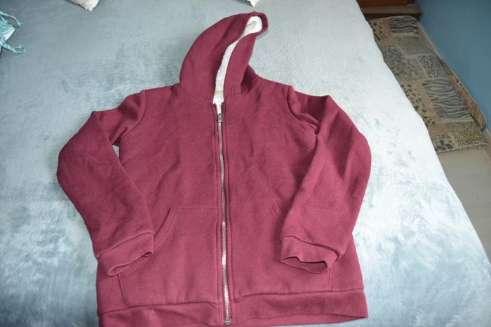 gilet zippé avec capuche , molletonné a l'interieur donc très chaud marque gémo taille 14 ans peu être mixte