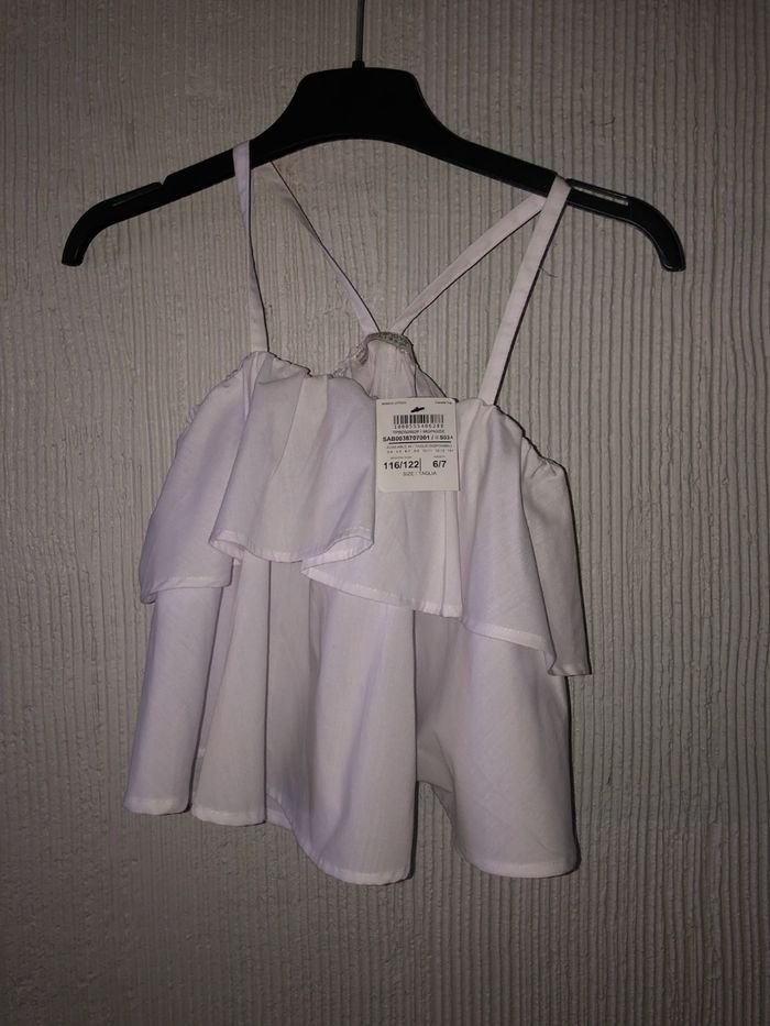 Blouse volantée Encolure légèrement ronde Volants  devant et au dos Fines bretelles Composition : 100% coton Coloris : blanc Prix : 12 € #sisterkayafille6ans #sisterkayafille7ans Réf : à.ai +1