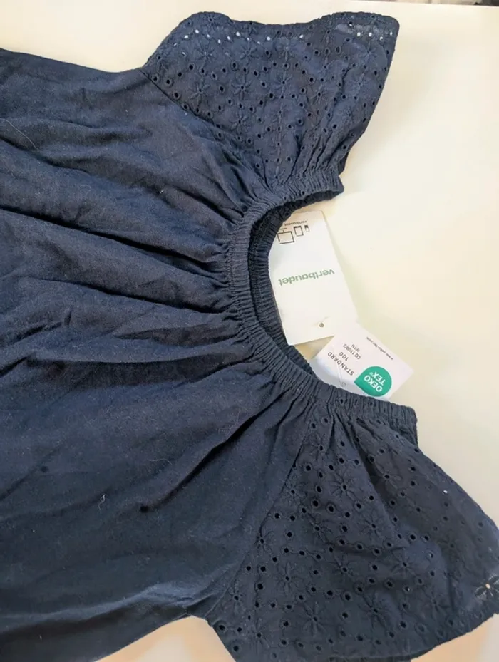 Blouse broderie anglaise bleu marine 4 ans Vertbaudet neuf - photo numéro 3
