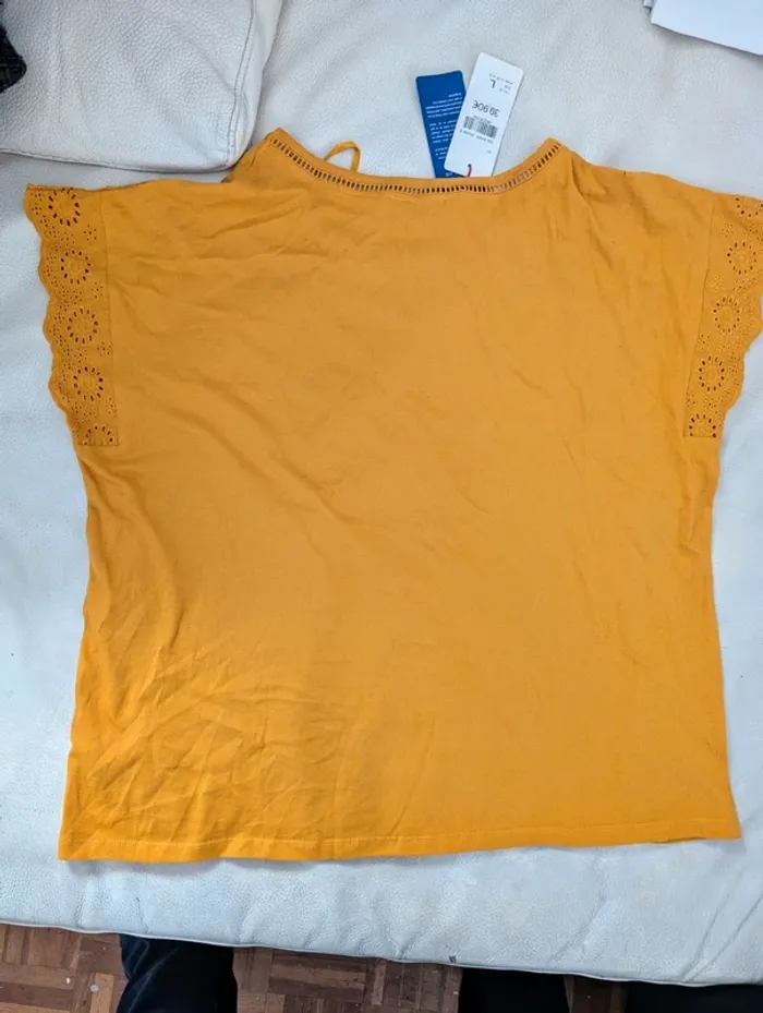 Blouse broderie anglaise jaune moutarde coton Cyrillus neuf - photo numéro 5