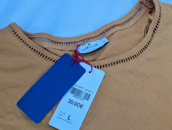 Je vends cette blouse en coton de la marque Cyrillus, de couleur jaune moutarde, avec une jolie broderie anglaise. - Type de produit : Blouse - Marque : Cyrillus - Taille : L - Couleur : Jaune / Moutarde - Matière : 100% Coton - Caractéristiques : Broderie anglaise Longueur 56 cm Largeur 54 cm Cyrillus Neuf avec étiquettes #yipin_femme_xl