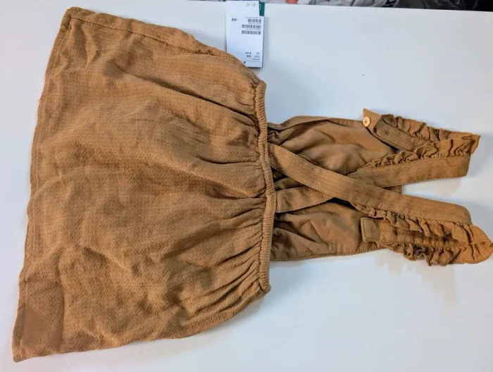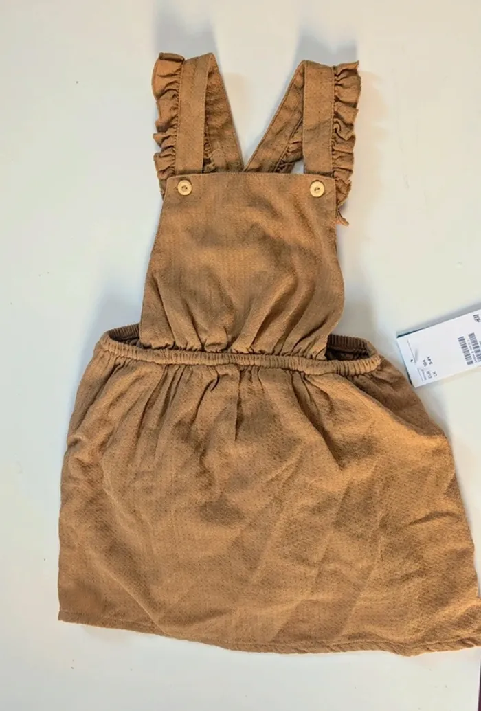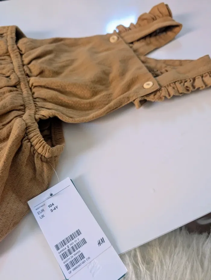 Je vends cette jolie robe tablier en coton jaune moutarde de la marque H&M, taille 3-4 ans.