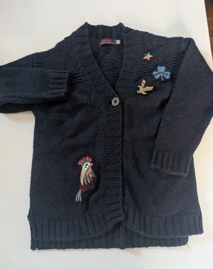 Gilet pull Catimini 4 ans fille laine bleu marine brodée - photo numéro 1