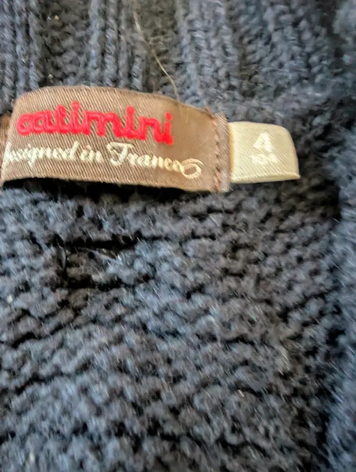 Gilet pull Catimini 4 ans fille laine bleu marine brodée