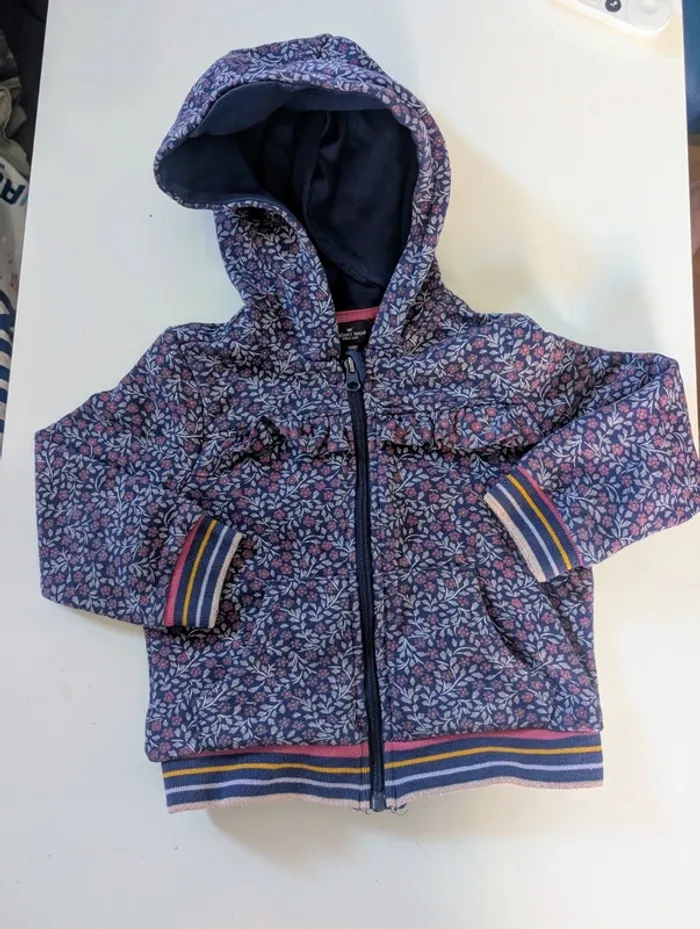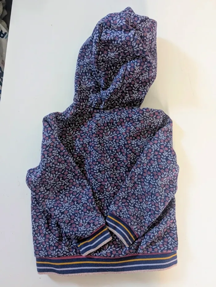 Je vends ce gilet sweat à capuche en coton de la marque Sergent Major, de taille 4 ans, avec un joli motif floral type Liberty - Type de produit : Gilet sweat à capuche - Marque : Sergent Major - Taille : 4 ans / 104 cm - Couleur : Multicolore - Matière : 100% coton - Caractéristiques : Capuche, Fermeture éclair, Motif floral Comme neuf, porté 1 fois #yipin_fille_4ans