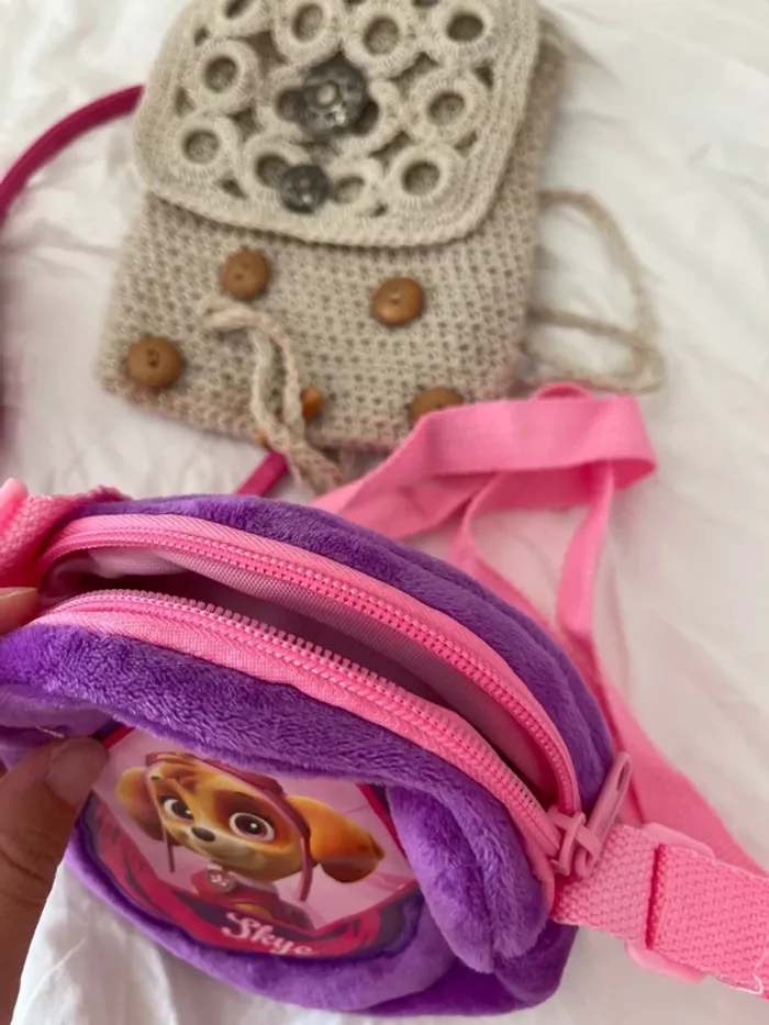 Sac à main fille Un ciré à pailletée et un peluche violet Scratch et zip Pat patrouille avec Stella Sac beige avec zip et bouton Offert Les 2 sacs pat patrouille paw patrol sont comme neuf Envoi par MONDIAL RELAY ou Vinted go merci 🙏