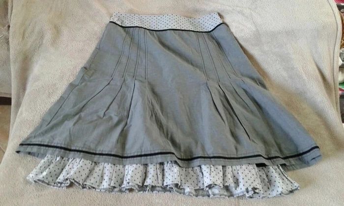 67% coton 33% polyamide empiecement 70% coton 30% polyamide doublure 65% polyamide 35%coton Largeur 39cm longueur 65cm Fermeture éclaire sur le côté #virgy61jupes