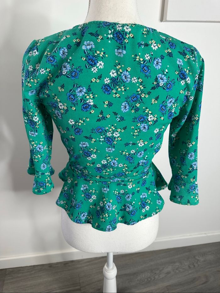 Top péplum portefeuille à fleurs vert et bleu H&M T34 XS - photo numéro 8