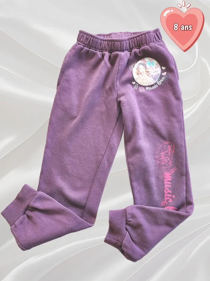 Vends pantalon de jogging, taille 8 ans, de la marque Disney, à l'effigie de Violetta, de couleur violet, en coton et polyester. Remise en main propre possible ⚠️ Pas d'envoi par Vinted Go car aucun point dans ma région. #Nebchan_fille8ans