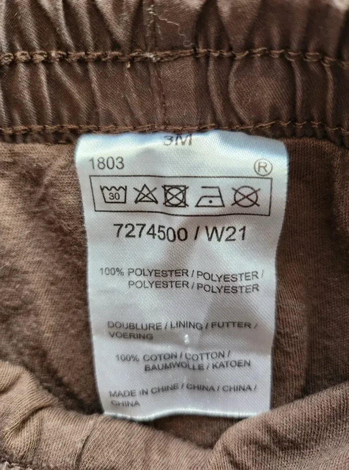 Vends pantalon, style treillis, taille 3 mois, de marque inconnue, de couleur marron, 100% polyester. Remise en main propre possible ⚠️ Pas d'envoi par Vinted Go car aucun point dans ma région. Possibilité de faire des lots ☺️ Dressing trié par taille ⬇️ (et voir profil 💕) #Nebchan_garçon3mois