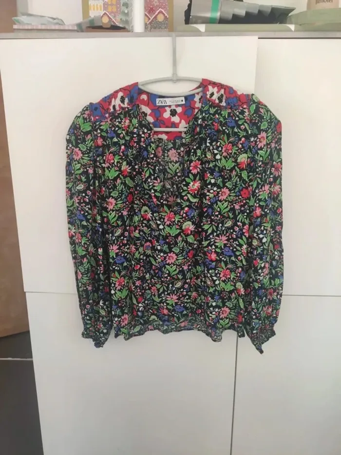 Zara chemisier blouse fleuri épaulettes - photo numéro 1