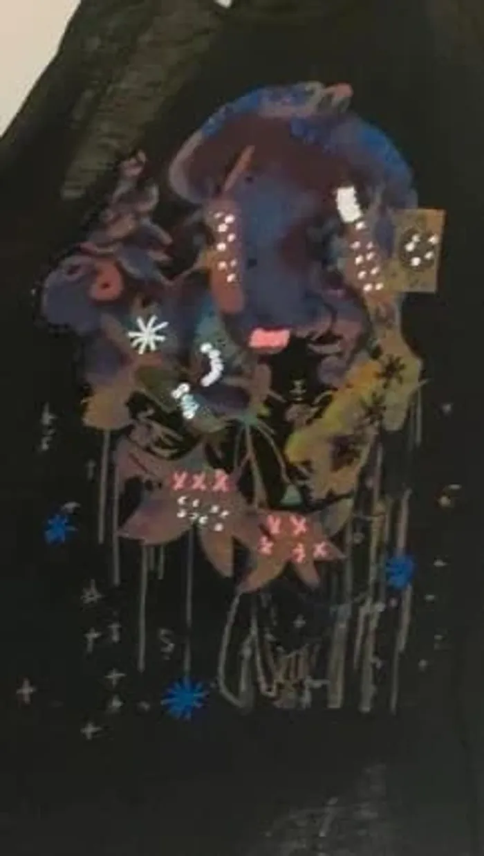 Top tunique tee shirt asymétrique avec perles, broderies, sequins. Plus long sur les côtés, jusque 90 cm ! Très large, floute la silhouette. Taille L. Très bon état #vulariFemmesL40