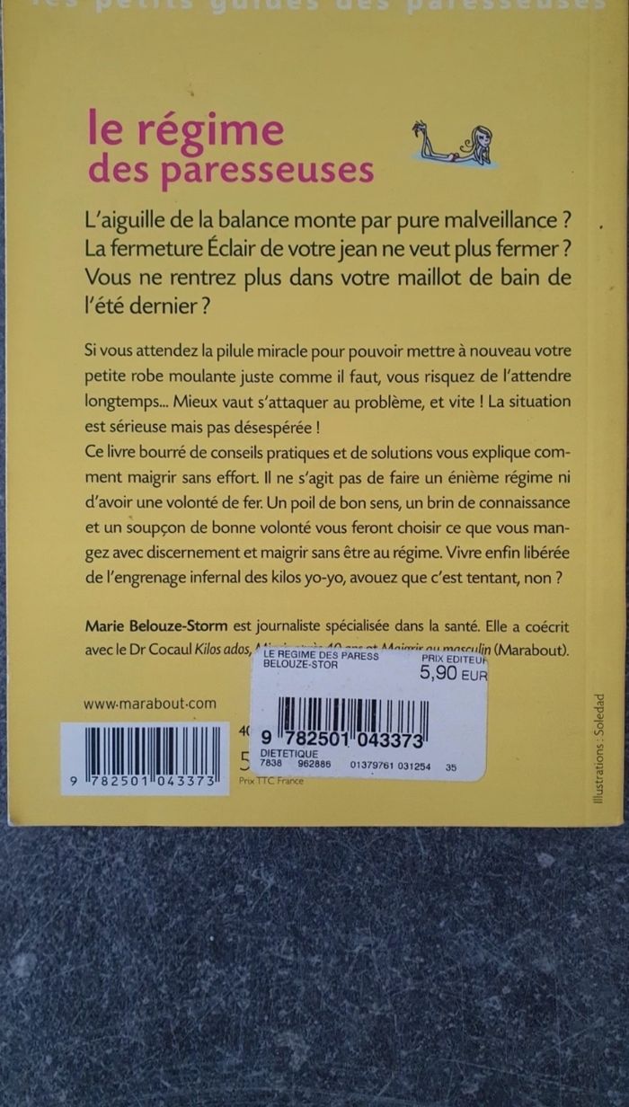 Je vends ce livre "Le régime des paresseuses" de Marie Belouz-Storm. - Titre : Le régime des paresseuses - Auteur : Marie Belouz-Storm - Genre : Autre - Éditeur : Marabout Voici un guide pour maigrir sans effort, bourré d'idées, de conseils et de solutions simples. Il ne s'agit pas d'un énième régime ou de changer radicalement vos habitudes. Un poil de bon sens, un brin de connaissance et un soupçon de bonne volonté feront toute la différence ! Très bon état N'hésitez pas à me contacter pour plus d'informations