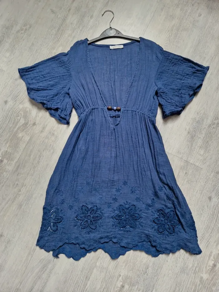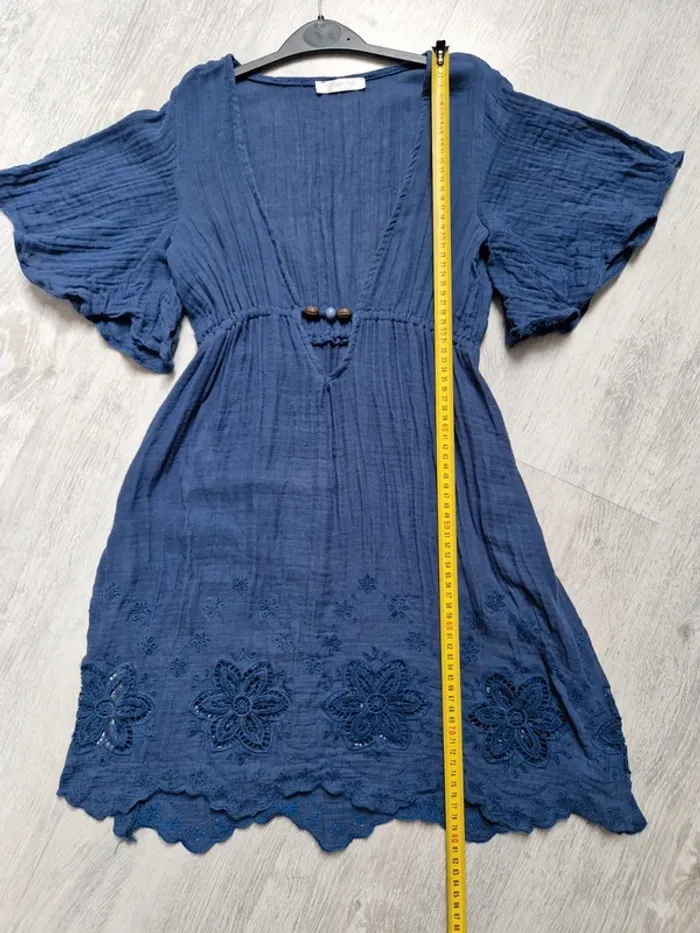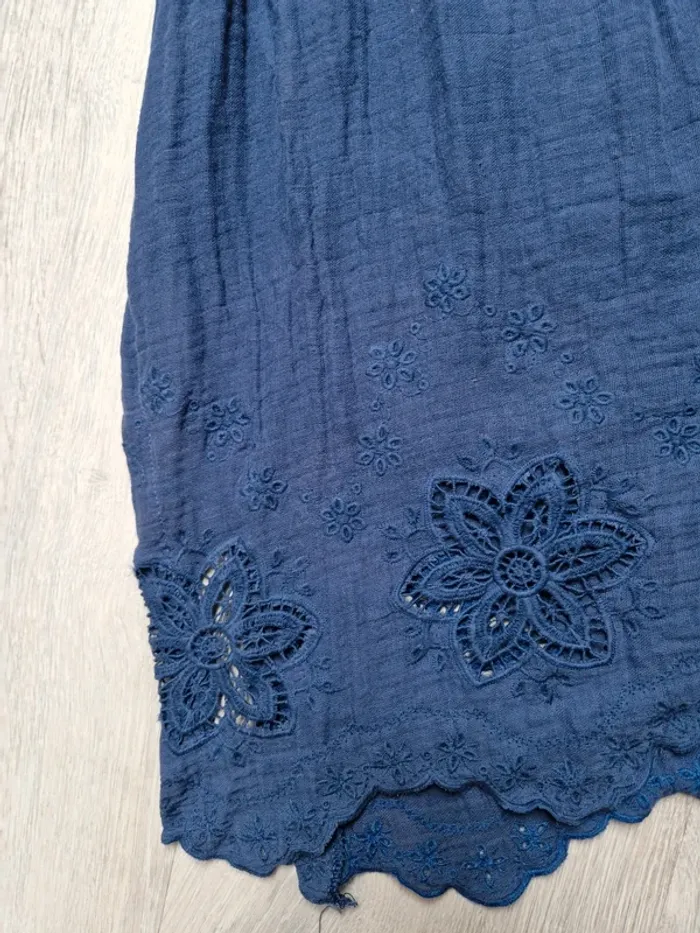 Tunique bleue gaz de coton Promod XS #julilo7femme Décolleté profond avec perles Excellent état
