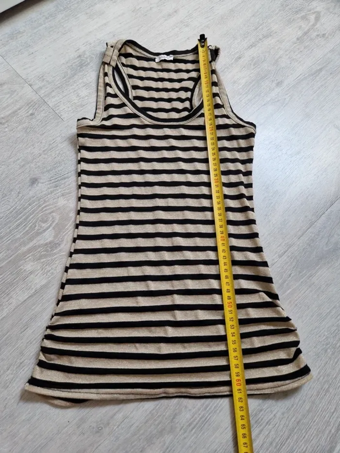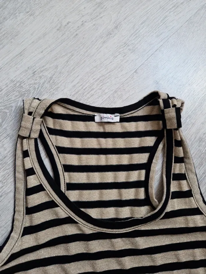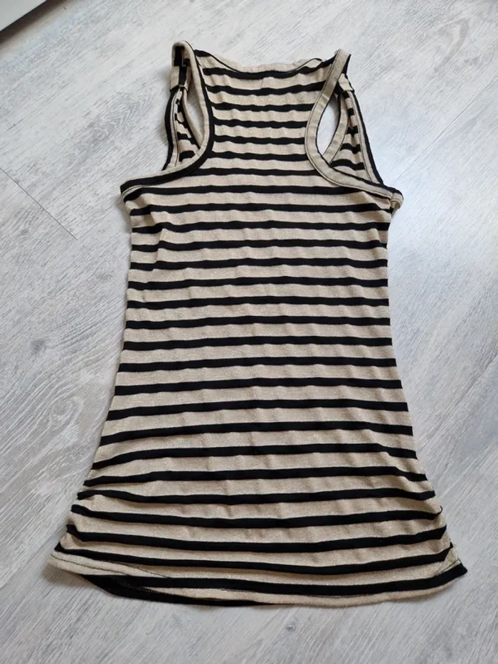Débardeur Pimkie noir et doré à rayures étiquette de taille coupée mais convient à un XS