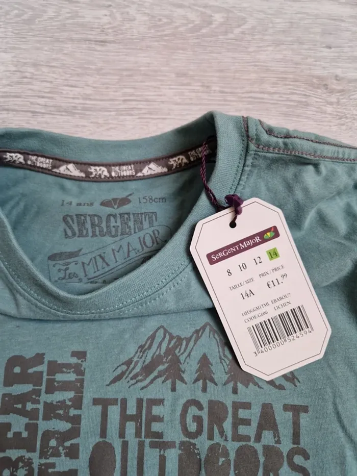 Tee-shirt manches longues neuf avec étiquette Sergent Major Taille 14 ans #julilo7garçon14ans A signaler : un petit trou au niveau de la seconde étiquette (voir photo)