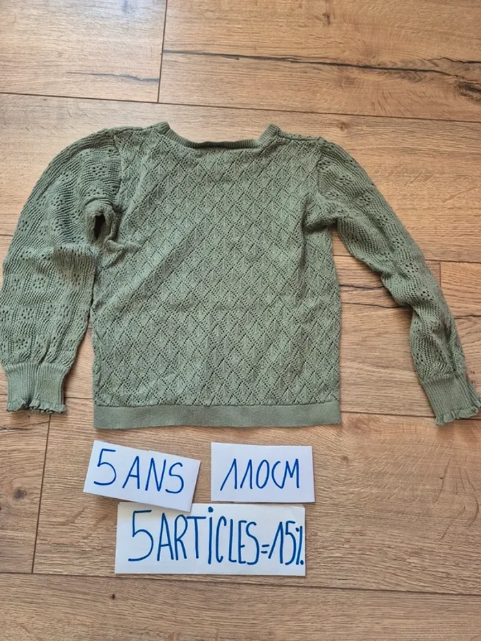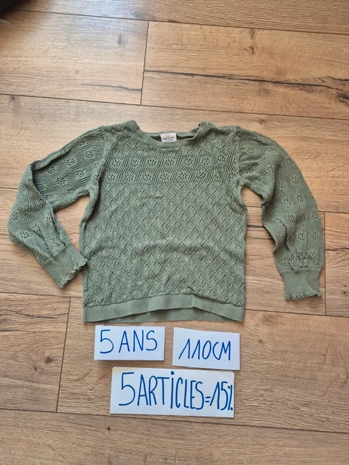 #5ansfilleblandine37260 Pull fille – Tape à l’Œil – 5 ans – Kaki – Ajouré ✨ Parfait état 📏 Taille : 5 ans 🛍 Marque : Tape à l’Œil 💚 Coloris kaki, motif ajouré délicat, idéal pour l’automne/hiver #tapealoeil #pullfille #5ans #kaki #ajoure #TrèsBonÉtat