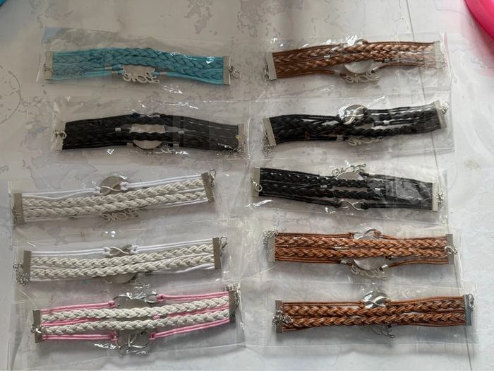Lot de 10 bracelets Disney Neuf dans les emballages 2 reines des neiges marron 1 Mulan noir 2 reines des neiges noir 1 Belle est la bête marron 1 reine des neiges blanc et rose 2 fée clochette blanc 1 Jasmine bleu