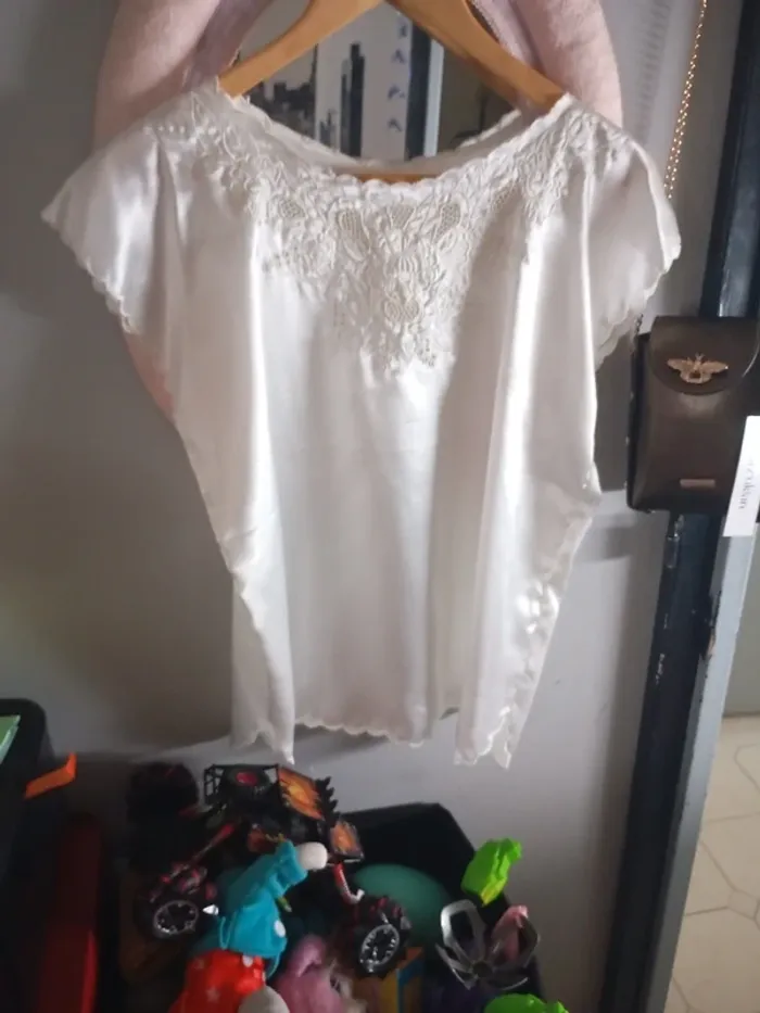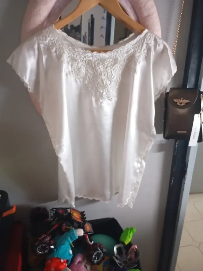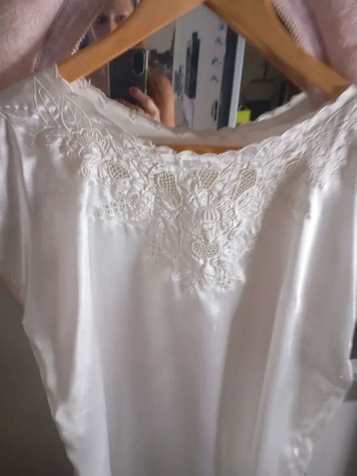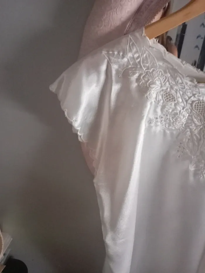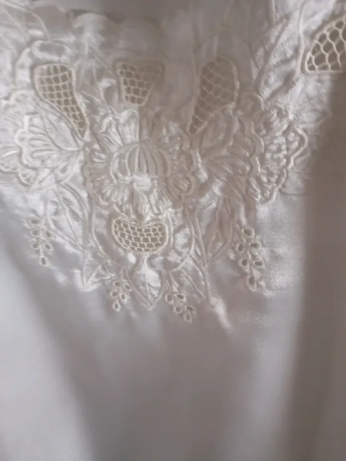 Broderie au col Ajouré aux manche et bas Blanc en excellent état Dégriffé aucune étiquette