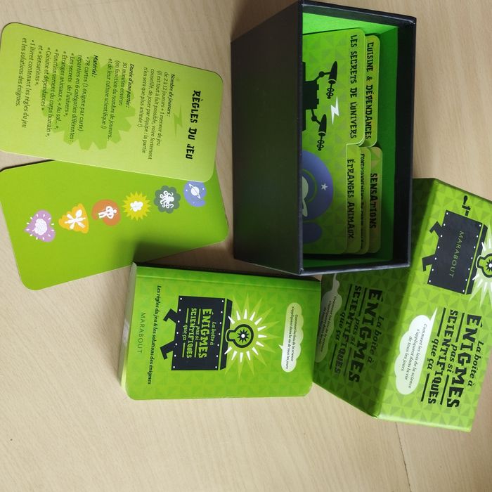 Jeu énigmes pas si scientifiques que çà de chez Marabout. Nombre de joueurs 2 à 12 + 1 meneur de jeu. Comme neuf!