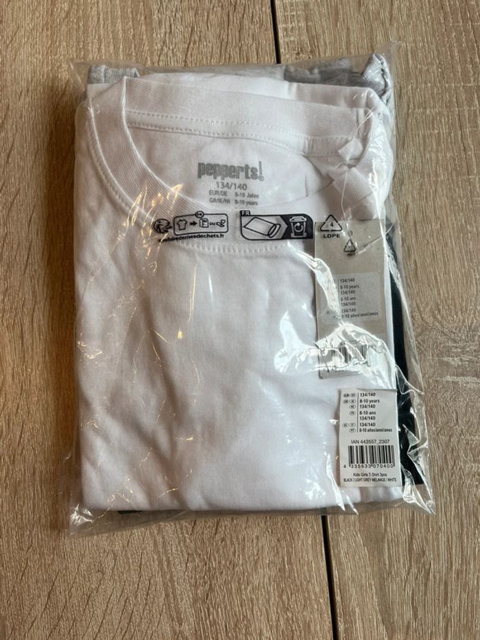 Lot 3 tshirts basic 8-10 ans blanc, noir et gris - photo numéro 2